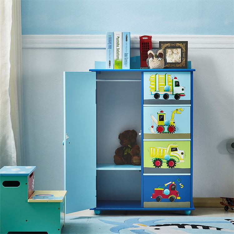 ● Cwpwrdd dillad Blue Kids Gyda 4 droriau