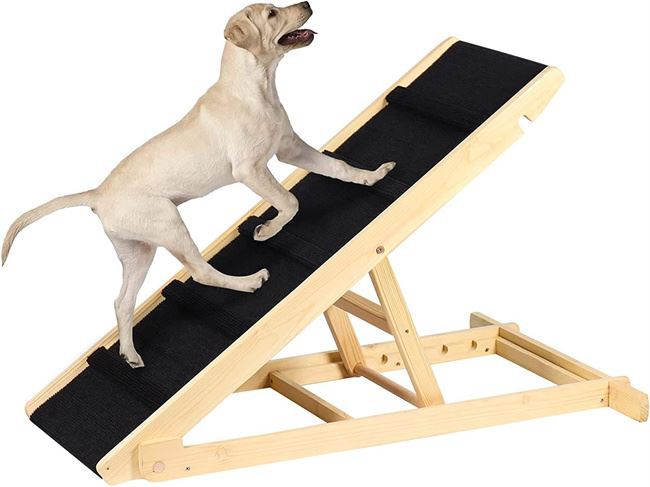 ·Ramp diogel a chadarn: Wedi'i gwneud o ffrâm bren premiwm a 5 stribed pren sbâr, mae'r ysgol anifeiliaid anwes hon yn darparu cefnogaeth gref ac yn cynnal digon o sefydlogrwydd i roi profiad dringo diogel i'ch anifail anwes. Lleihau ofn yn effeithiol a sicrhau diogelwch eich anifail anwes yn llawn wrth ddefnyddio.